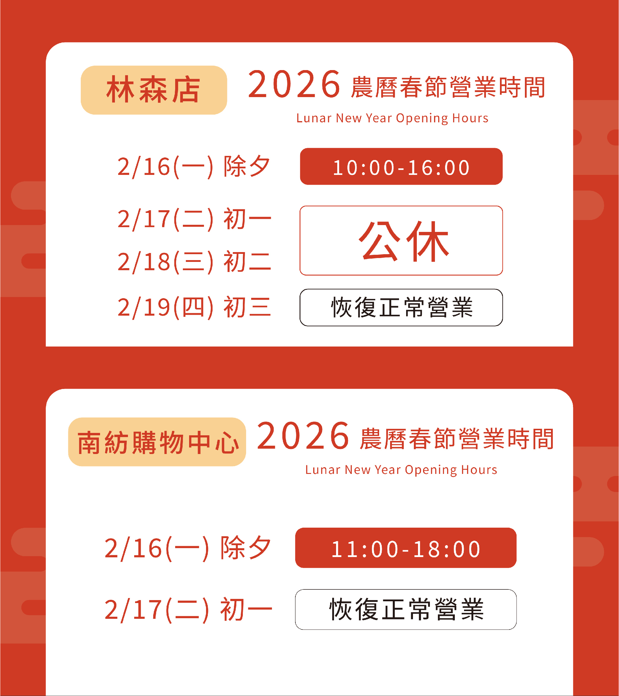 營業時間:週一 - 週日 10:00 - 21:00