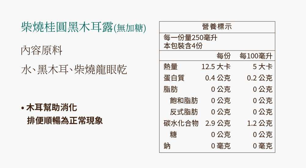 柴燒桂圓黑木耳露 (無加糖) 1000ML 1瓶