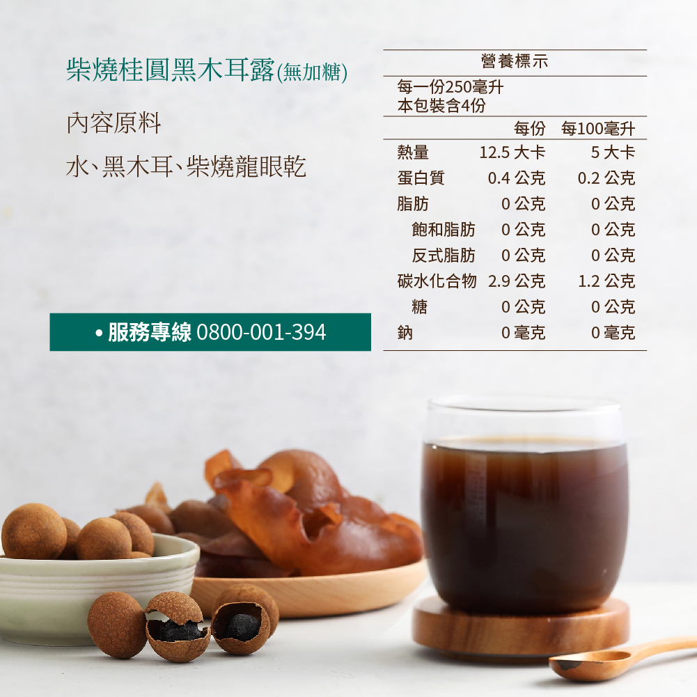 柴燒桂圓黑木耳露 (無加糖) 1000ML 1瓶