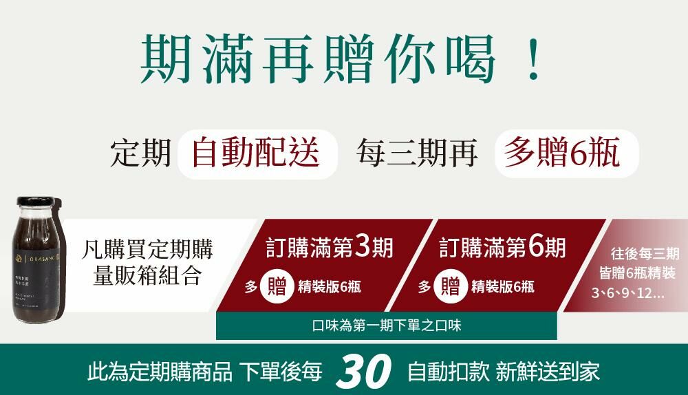 🌟訂購定期購量販組,滿三期贈送6入精裝柴燒桂圓黑木耳露,會一同與定期購商品寄出🌟