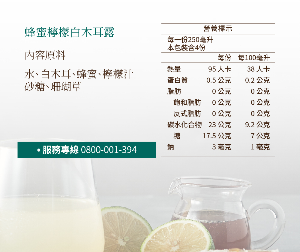 蜂蜜檸檬白木耳露 1000ML 1 瓶