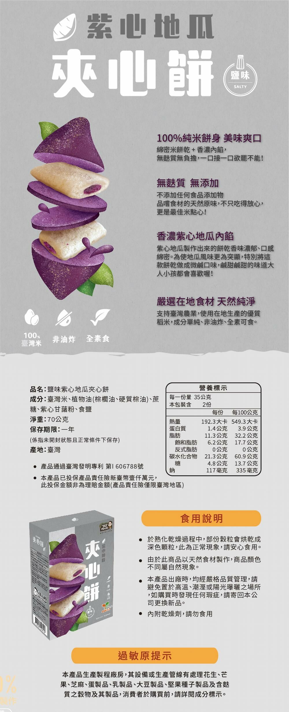 ◆口感綿密,質地細緻,香氣濃郁,將甜、鹹、脆巧妙結合,使紫心地瓜內餡風味更加凸顯迷人;鹹甜鹹甜的味道大人小孩都會喜歡喔!