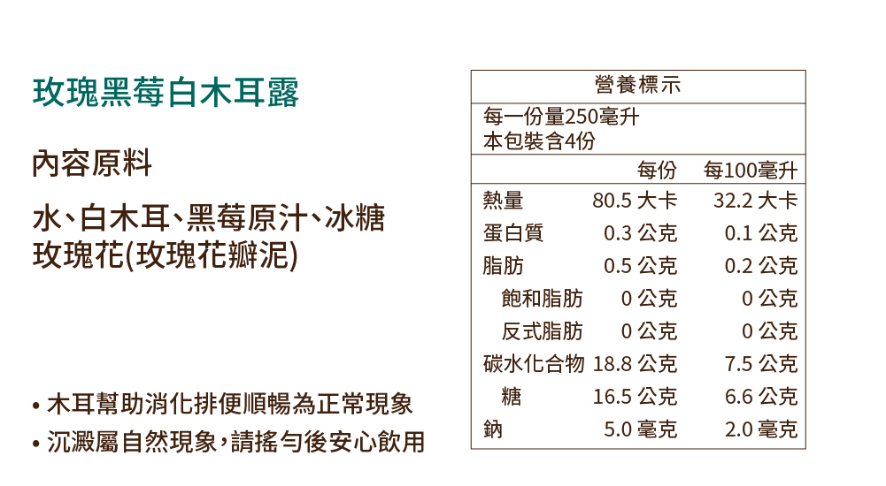 1.玫瑰黑莓白木耳露 1000ML 4瓶